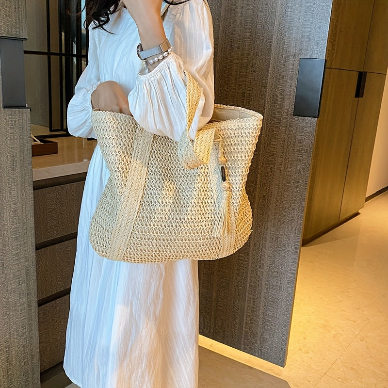 Women's Woven Beach Tote Bag - Versatile Summer Style