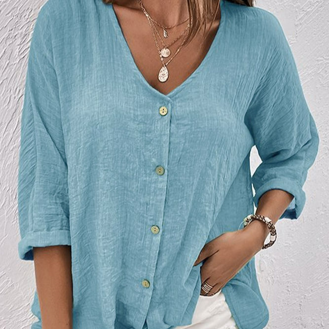 This stylish women’s V-neck shirt is a seasonal favorite, perfect for adding a layer of elegance to your wardrobe. With high-quality material fabric and a design that’s both comfortable and chic, this piece is a must-have for modern women’s fall fashion. Pair it effortlessly with jeans, skirts, or tailored pants to create various looks with ease.