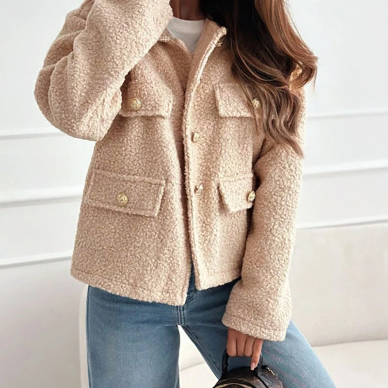 This short wool coat delivers sophistication and warmth in one, making it a must-have for autumn and winter. Crafted from a premium wool blend, it offers a structured yet cozy fit, while the classic lapel collar and button closure add a timeless appeal. Designed for versatility, this coat is perfect for layering over both casual and dressy outfits.