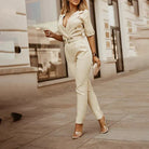 This fashionable and versatile jumpsuit is the perfect choice for women who appreciate elegance and comfort. Its sleek design and tailored fit make it an essential piece for any wardrobe.