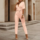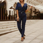 This stylish and elegant belted jumpsuit for women is designed to enhance your silhouette while offering all-day comfort. The sleek V-neck design adds a touch of sophistication, while the waist-defining belt ensures a flattering and tailored fit. Perfect for casual outings, evening events, or weekend getaways, this versatile jumpsuit keeps you looking stylish and confident.