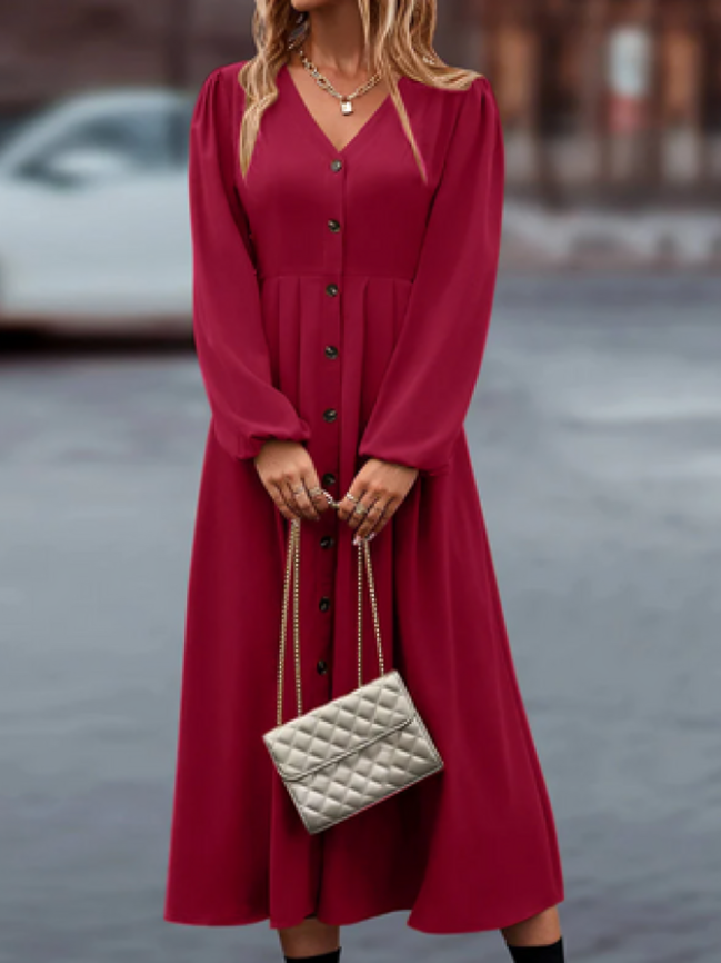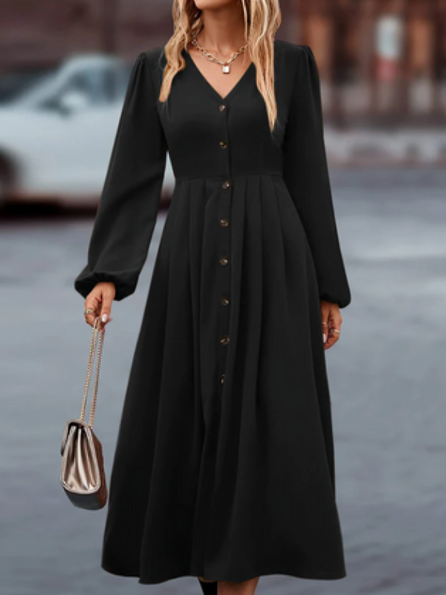 Vivienne - Elegant Long Sleeve V-Neck Dress for Women