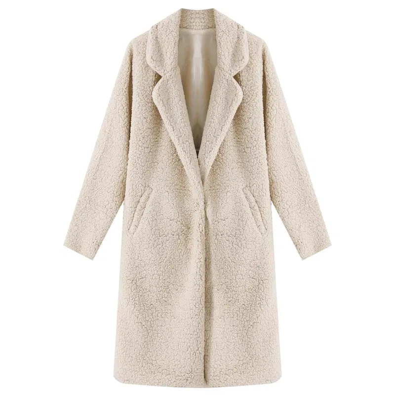 This coat is available in White, Black, Brown, Light Pink, Khaki, Beige, Army Green, and Blue, in sizes S-3XL.