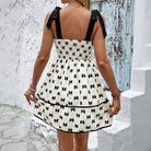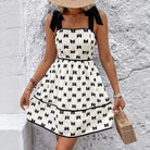 Women's Off-White Tiered Summer Dress - Bow Straps, Flowy & Playful
