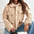 This short wool coat delivers sophistication and warmth in one, making it a must-have for autumn and winter. Crafted from a premium wool blend, it offers a structured yet cozy fit, while the classic lapel collar and button closure add a timeless appeal. Designed for versatility, this coat is perfect for layering over both casual and dressy outfits.