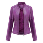 Women's Biker Jacket - Front Zipper with Quilted Detail