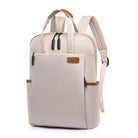 This anti-theft travel backpack is available in: Cream, Black, Grey, and Pink.