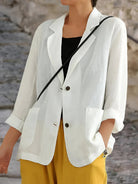 This casual linen blazer for women is the perfect balance of minimalist style, lightweight structure, and everyday functionality. Pair it with wide-leg trousers, shorts, or jeans for a modern layered outfit that works across relaxed office days, holidays, or city strolls.