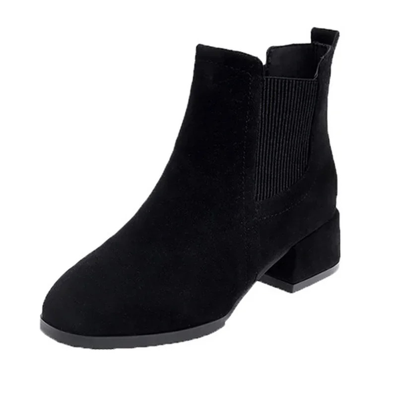 These suede Chelsea boots with block heel for women are the perfect combination of elegance and practicality. Made with high-quality suede, they offer lasting comfort and a sleek, modern design. The elastic sides and sturdy heel ensure ease of wear, making them ideal for everyday use or stylish evenings out.