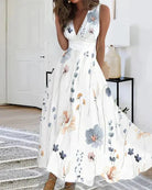 Add timeless charm to your wardrobe with this chic and stylish floral V-neck dress that blends elegance and comfort effortlessly. Designed with a flattering silhouette, this dress highlights your curves while ensuring a relaxed and graceful look. The delicate floral pattern adds a touch of femininity, making it perfect for casual outings and special occasions.