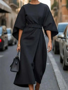 Elegant A-Line Maxi Dress with Belted Waist and Bell Sleeves for Women