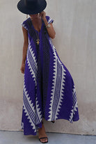 Step into elegance and ease with this flowy maxi dress featuring eye-catching ethnic prints, a deep V-neckline, and a relaxed, flowing cut. The bold vertical design elongates the figure while offering freedom of movement and effortless charm. Perfect for holidays, beach getaways, or warm-weather afternoons, this dress brings vibrant style to any casual setting.
