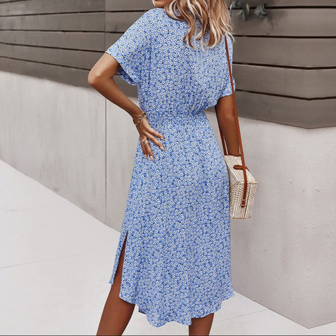 This flowy floral midi dress offers a flattering silhouette and lightweight fabric, perfect for both casual outings and special events. Its breathable material ensures comfort throughout the day. Embrace effortless style and confidence wherever you go.