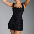 Elevate your occasion wear with this romantic 3D floral mini dress, where timeless design meets modern elegance.