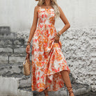 Embrace Summer Vibrancy with Our Women's Light Orange Tiered Floral Midi Dress