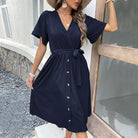 - Classic Button Placket: Features a stylish full-length button closure that adds a touch of classic charm and visual interest to the dress.