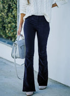 Step out in style with our Women's Flared Jeans. Designed for a modern fit, ultimate comfort, and versatile appeal, these jeans feature a flattering high-rise waist and a subtle flared leg. The sleek, solid colour and soft texture create a sophisticated look, perfect for dressing up or down for any occasion. The image showcases their smooth silhouette and comfortable drape.
