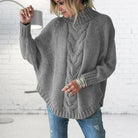 Women's Jumper - Funnel Collar with Cable Knit Pattern