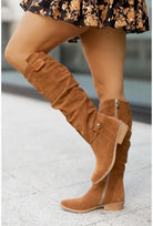 Embrace timeless style with our Women's Knee-High Boots, designed to combine a relaxed silhouette with versatile details. As prominently seen in the image, these boots are a true standout, featuring a trendy slouch shaft, a stylish strap detail, and a low block heel. The convenient side zipper allows for effortless on and off, while the knee-high silhouette ensures a timeless and elegant look. Perfect for dressing up a casual outfit or adding a stylish flair to a dress, these boots are an ideal choice for effortlessly enhancing your look while keeping you comfortable and confident.