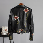 Women's Black Leather Jacket - Biker Style & Floral Embroidery with Studs