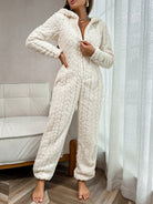 Women's White Onesie - Plush Quilted Hooded Jumpsuit with Zip