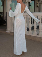 Step into timeless charm with this chic crochet knit maxi dress, designed to blend comfort, feminine style, and bohemian flair. The deep V-neckline and long sleeves offer a graceful silhouette perfect for transitional seasons. Whether you're heading to a beach holiday or a garden soirée, this dress adds a touch of sophistication to every occasion.