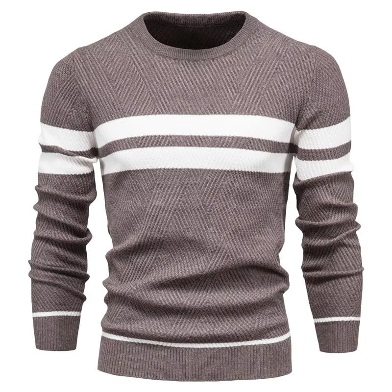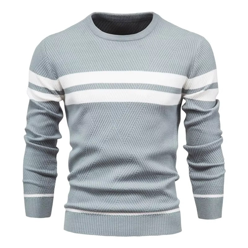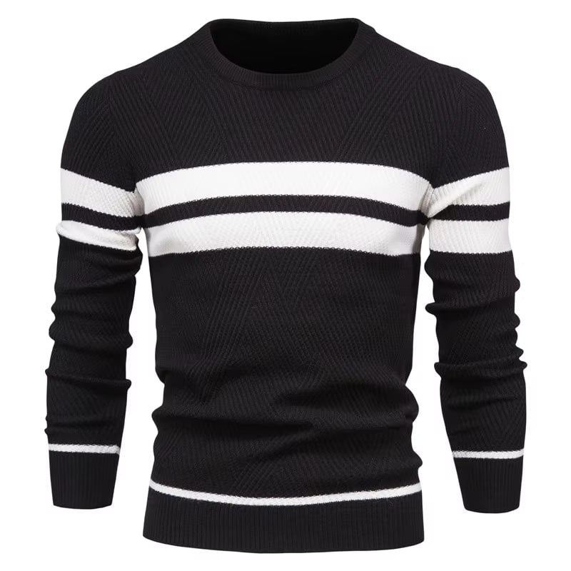 Embrace classic style with a contemporary twist with our versatile Men's Jumper. This comfortable piece features a timeless crew neck and a distinctive Stripe Detail across the chest and sleeves, offering a unique and fashionable aesthetic. The relaxed fit is ideal for comfortable layering, while the ribbed cuffs and hem ensure a snug feel and lasting shape. This jumper's thoughtful details and clean finish make it a wardrobe staple that can be easily dressed up or down. Its effortless style and comfortable feel make it an essential addition for a polished, everyday look.