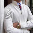 Elevate your cool-weather style with this Men's Jumper. This piece is a masterclass in versatile layering, featuring a distinctive short zip fastening that allows for easy neck control and style variation. The structured high collar provides a clean, modern, and elegant neckline, making it perfect for transitioning from a business-casual office setting to a relaxed weekend outing. Crafted from a soft knit blend, this quarter-zip jumper is designed for both comfort and a refined look, offering a sleek, modern aesthetic in a timeless design.