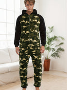 Upgrade your loungewear collection with our highly versatile Men's Onesie. This comfortable layer is the perfect blend of casual comfort and distinctive style, featuring a contrasting Camouflage Print body with solid black sleeves and hood. The full-length Zip on the front allows for easy wear, and the attached hood provides extra coverage. The elasticised cuffs at the wrists and ankles ensure a secure and comfortable fit. This Men's Onesie is an essential piece for year-round wear, perfect for adding a touch of laid-back sophistication to your wardrobe.