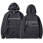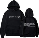 - Slogan Print: A unique "you are enough" and expressive print at the back that adds a bold and personalized touch to the design.