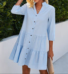 This gingham button-down dress combines classic style with modern comfort. The lightweight fabric and flattering silhouette make it perfect for both casual outings and special occasions. Its versatile design ensures you stay chic and comfortable all day.