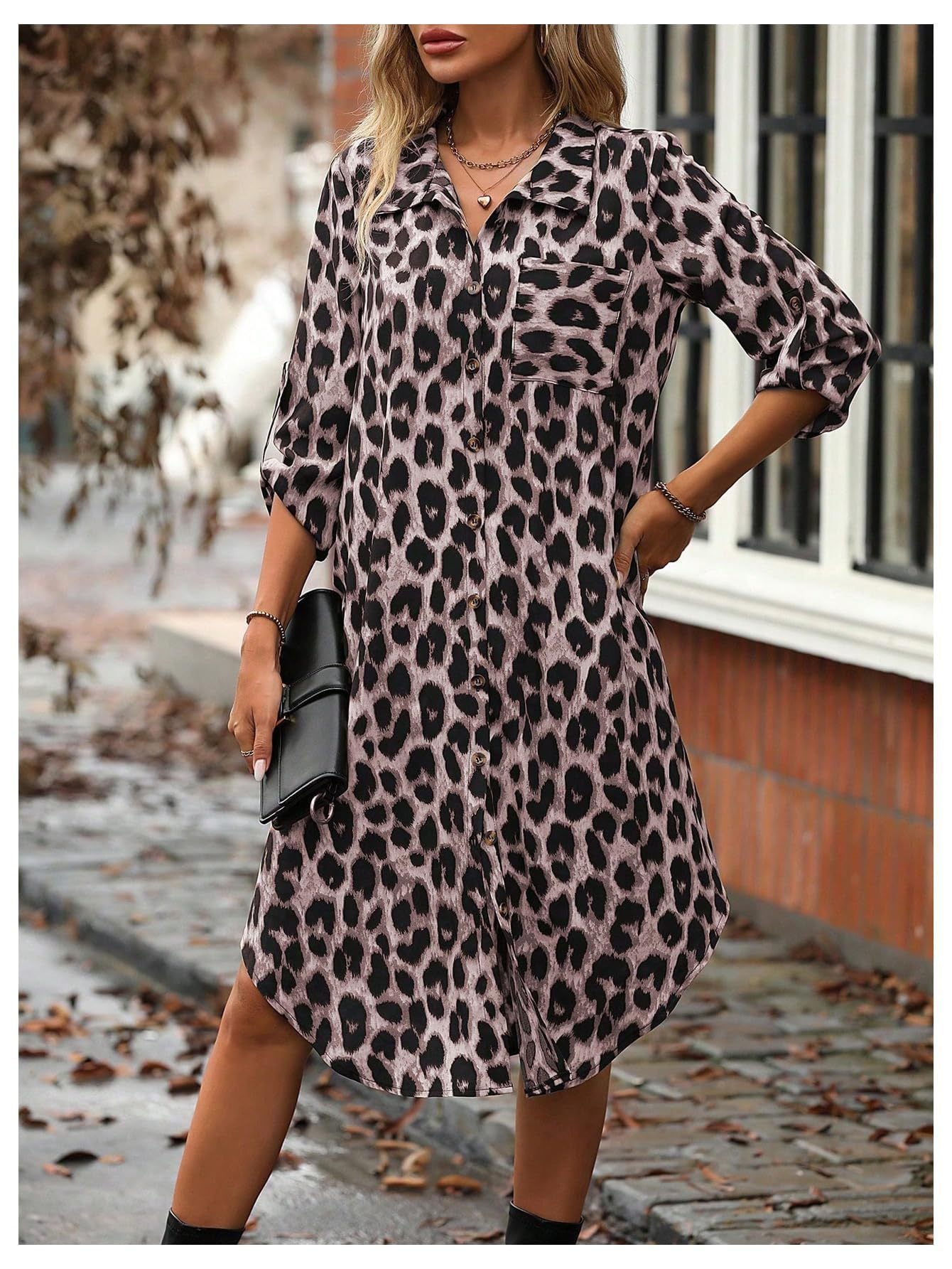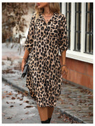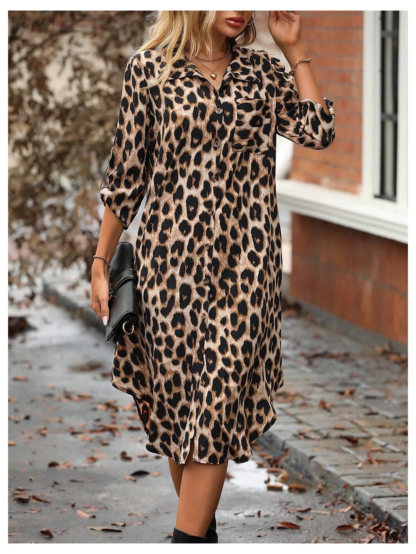 Women's Leopard Print Button-Up Midi Dress - Versatile Casual & Elegant