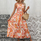 Embrace Summer Vibrancy with Our Women's Light Orange Tiered Floral Midi Dress