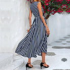 Women's Striped A-Line Midi Dress - Elegant Summer Casual Wear