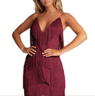 Make a statement in this bold fringe bodycon mini dress, designed to hug your curves and move with you. The spaghetti straps and fringe detailing create a dynamic look that's perfect for nights out and high-energy events. Whether you're hitting the dance floor or attending a chic soirée, this dress guarantees you'll stand out with confidence.