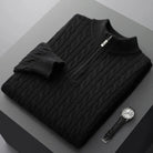 Men's Cable Knit Jumper - High Neck Quarter Zip