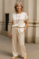 Soft Wide-Leg Trousers and Short Sleeve Top Set for Women