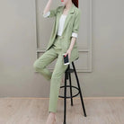 This blazer suit set is available in Black, Green, and Pink, in sizes S-XL.
