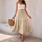 Discover Effortless Elegance with Our Women's Khaki Tiered Midi Skirt