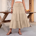 Women's Khaki Tiered Midi Skirt - Adjustable Drawstring, Flattering & Versatile