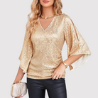 Elevate your wardrobe with this elegant sequined top, designed to add sparkle to any ensemble. The perfect blend of comfort and style, it features shimmering sequins that catch the light beautifully. Ideal for both special occasions and casual outings, this top ensures you always stand out with a touch of glamour.