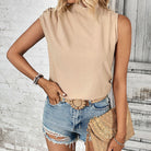 Women's Apricot Sleeveless Mock Neck Top - Stylish, Versatile Layering