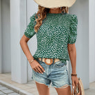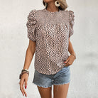 Women's Smocked Puff Sleeve Blouse - Elegant Versatile Top