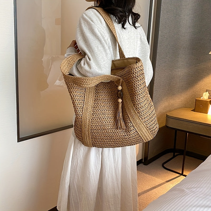 Women's Woven Beach Tote Bag - Versatile Summer Style