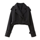 Women's Stylish Crop Trench Coat - Elegant Belt Design