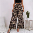 Women's Leopard Print Wide Trousers - Flowing Material Elastic Waist