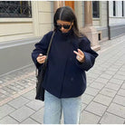 Discover a new level of sophistication with our highly versatile Women's Short Jacket. This contemporary piece of outerwear is designed to be a key layering piece for any season, blending style and functionality with its unique features. The High Neck design offers extended coverage, creating a clean and modern silhouette, while the distinctive Asymmetric Button Front closure adds a structured and unique element to the front of the jacket. With its relaxed fit and long sleeves, this jacket is suitable for layering over tops or knitwear, making it an adaptable and essential piece for a year-round wardrobe.