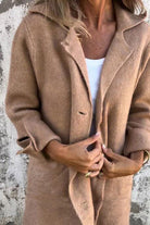 Crystalle - Solid Color Lapel Pocket Single Breasted Midi Coat for Women