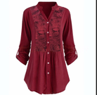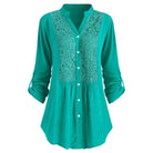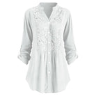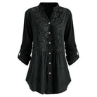 This elegant longline lace button-down blouse for women features a classic lace design with a flattering silhouette. The button-down style and long length provide a refined and polished look, making it perfect for both casual and dressier occasions. The lace detailing adds a sophisticated touch to this wardrobe essential.