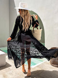 Elegant Sheer Long Lace Beach Cover-Up for Women